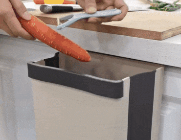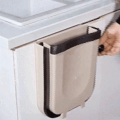 Il nostro contenitore della spazzatura sospeso si installa facilmente senza bisogno di attrezzi. Basta appenderlo a qualsiasi armadietto o porta.