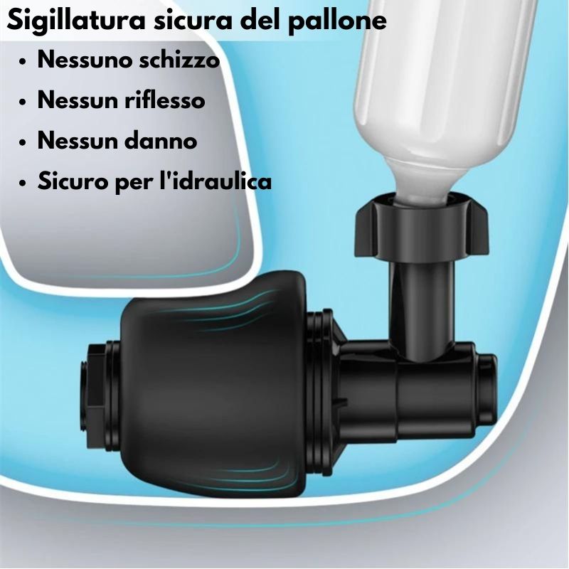 No, lo sturatore è progettato per evitare schizzi grazie alle testine in gomma flessibile, che si adattano perfettamente alla forma dello scarico e creano una chiusura sicura, anche con alta pressione.