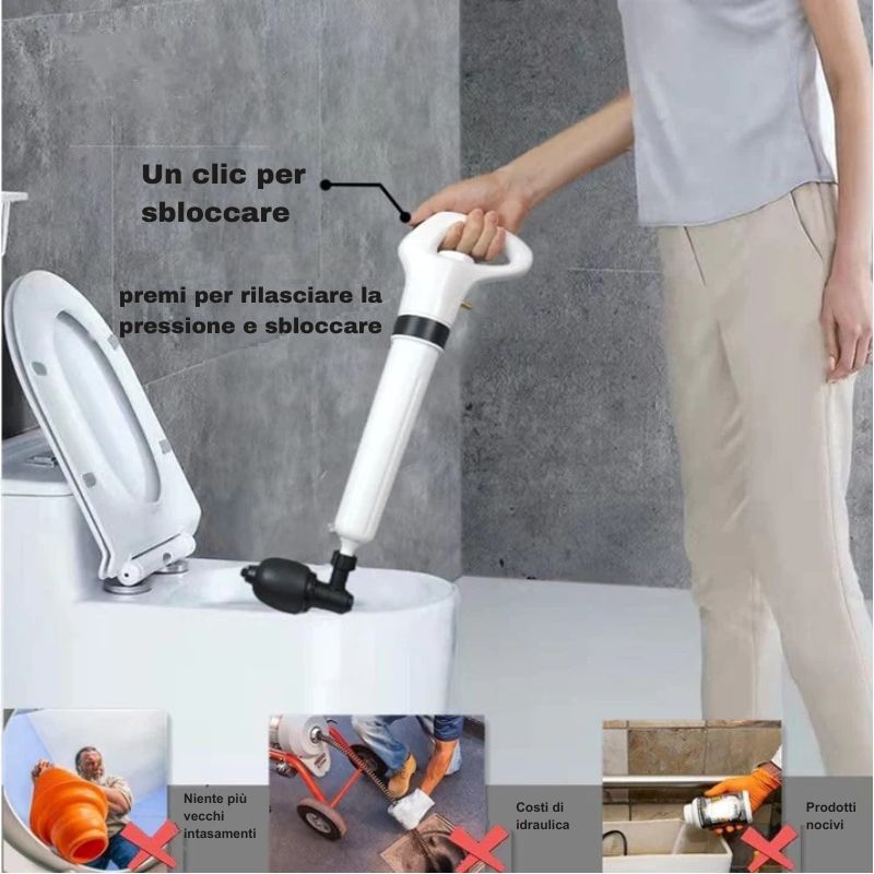 La pulizia dei suoi condotti di scarico non è mai stata così semplice e richiederà solo pochi minuti! Un semplice getto d'aria può aiutare a rimuovere le ostruzioni nelle tubature fortemente bloccate.
