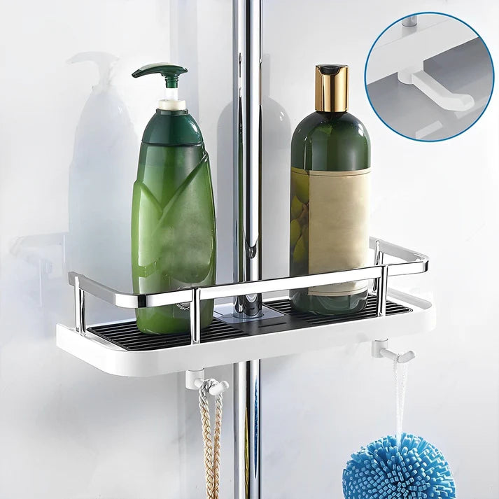 Montate la nostra mensola da doccia in pochi minuti, senza bisogno di fare fori, per avere sempre uno spazio di archiviazione a portata di mano.