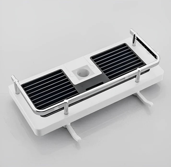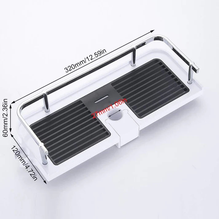 La nostra mensola è dotata di un recinto per mantenere gli oggetti al loro posto. Grazie ai ganci, potete riporre asciugamani, palline da bagno, ecc. Il design forato della mensola consente un rapido drenaggio dell'acqua.